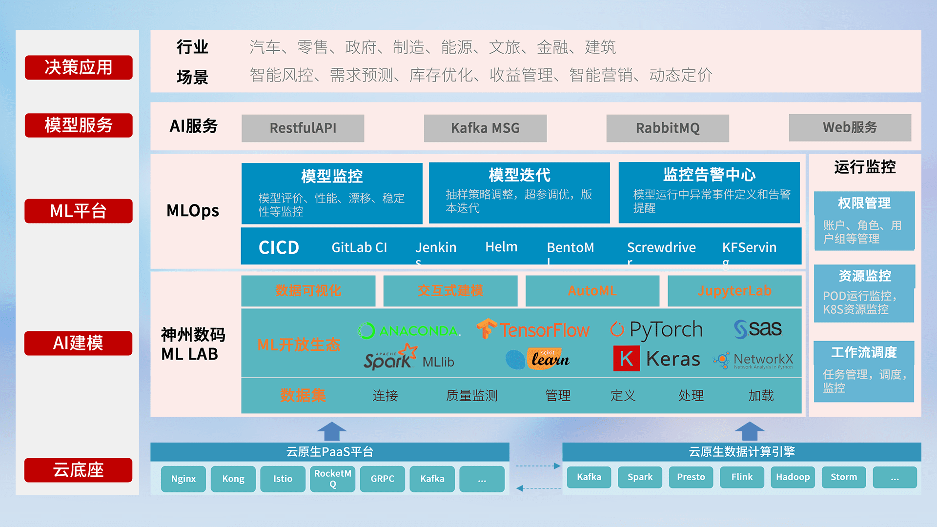 数据+模型双引擎驱动,,,,面向智能服务场景,,,,快速灵活利用AI技术,,支持业务决策,,,,助力企业智能化转型破局。。。。
